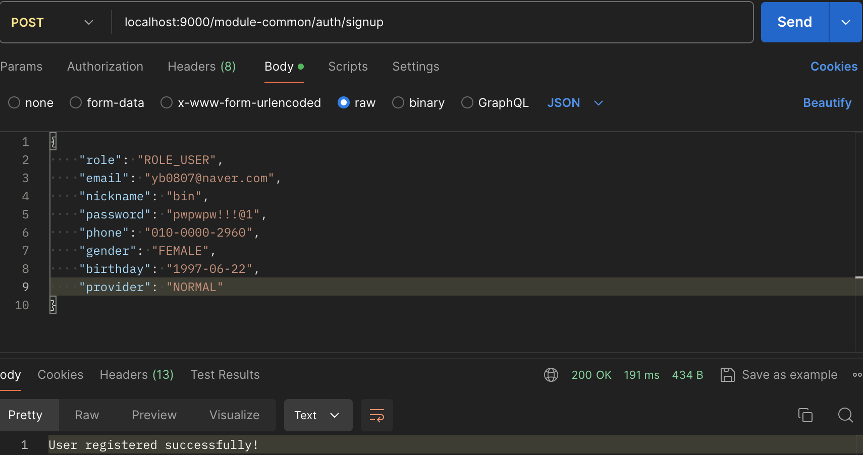 - Redis 내에 인증된 전화번호로 등록 성공