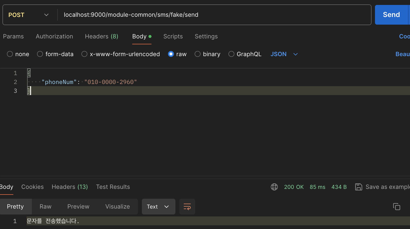 - 전화번호 인증없이 바로 회원가입 API에 데이터를 넣은 경우 → 실패