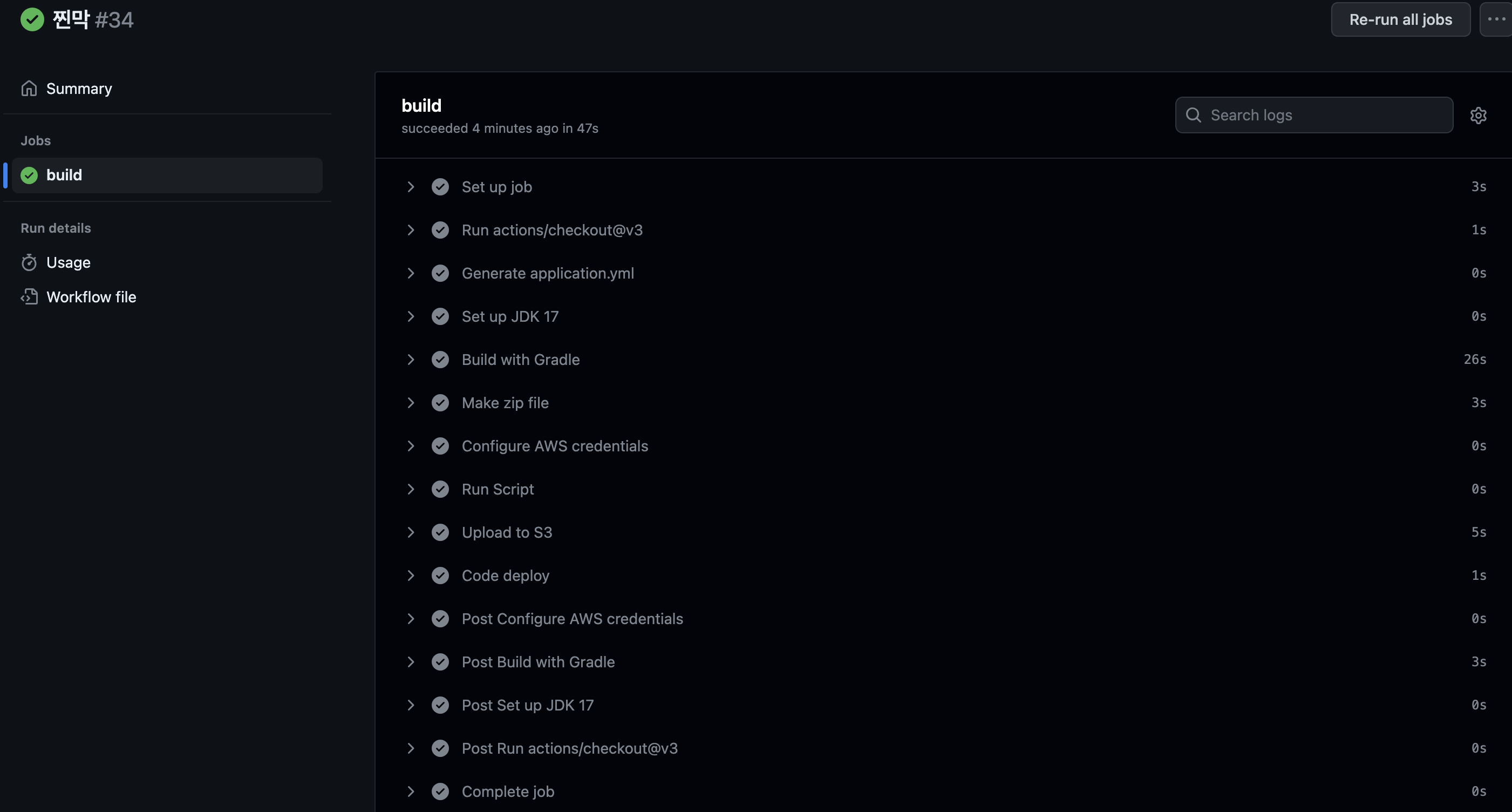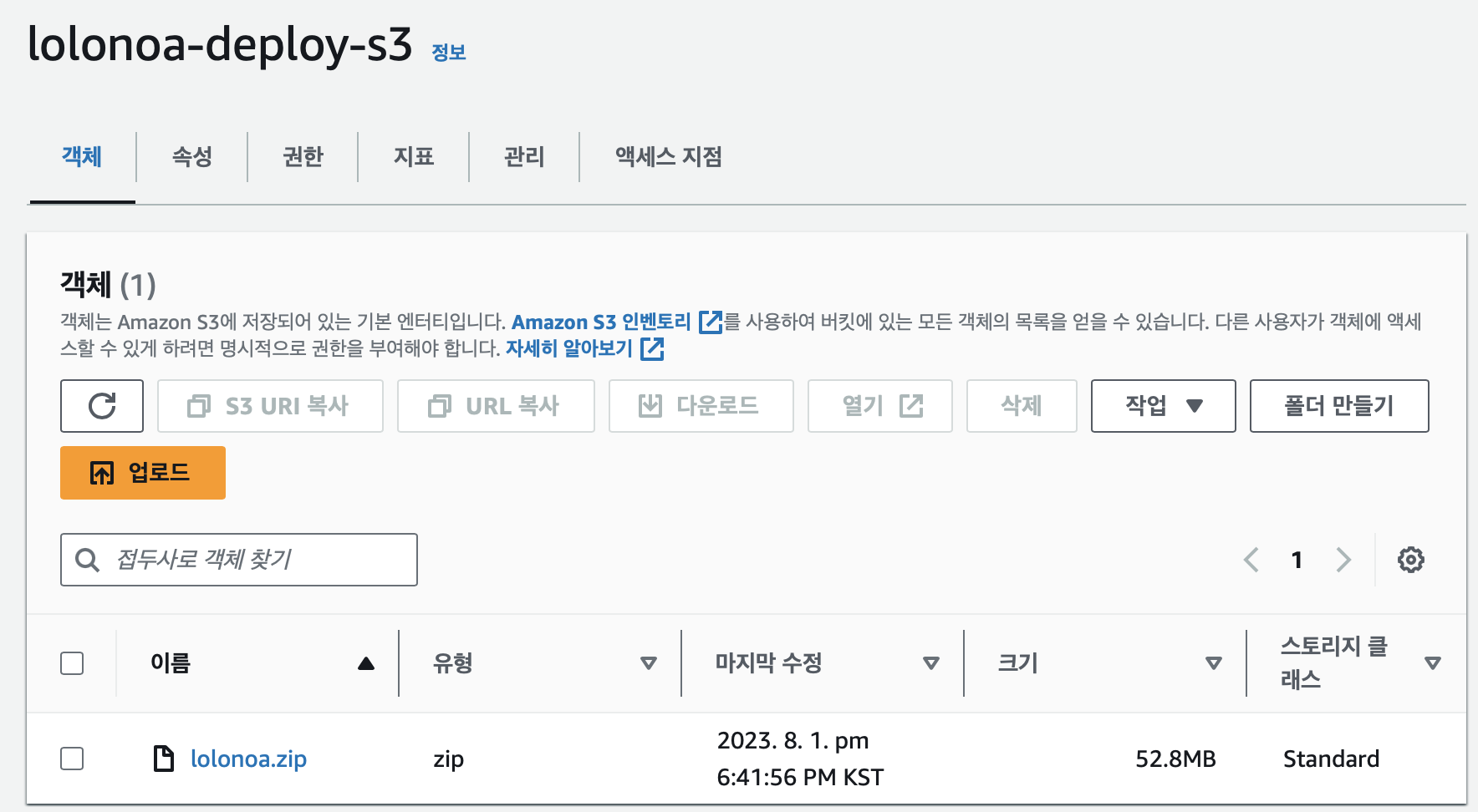 run: aws s3 cp --region ap-northeast-2 ./lolonoa-zip.zip s3://lolonoa-deploy-s3/lolonoa.zip #S3에 업로드하는 명령어