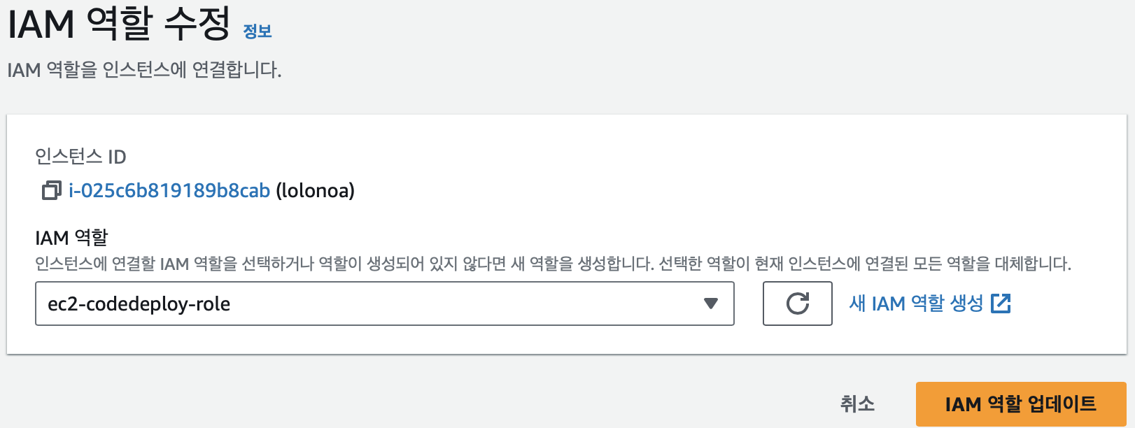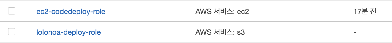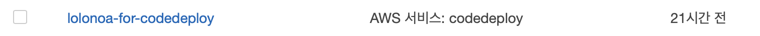 역할생성: IAM → 역할 생성 lolonoa-for-codedeploy